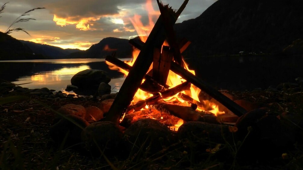 Lakeside Campfire with Relaxing Nature Night Sounds